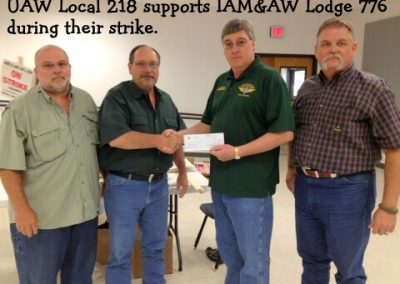 UAW Local 218 Supports IAM DL 776 Kevin Riley-Community Services Local 218, Steve Andrews- President Local 218, Paul Black-President IAM 776, Jeff Wichman-2nd VP Local 218